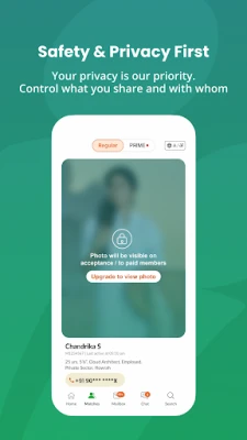 பிரீமியம் உறுப்பினர்கள் கூடுதல் பலன்களையும் பெறுவார்கள். பாதுகாப்பான உடனடி அரட்டை மற்றும் குரல் அழைப்பு அம்சங்கள் மூலம், எப்போது வேண்டுமானாலும், எங்கிருந்தாலும் உங்கள் பொருத்தங்களுடன் தொடர்புகொள்ளலாம். "பெங்காலி மேட்ரிமோனி பிரைம்" வழியாக சரிபார்க்கப்பட்ட, நம்பகமான சுயவிவரங்களை மட்டுமே அணுகலாம். உங்கள் சுயவிவரம் பிரீமியம் உறுப்பினர்கள் பிரிவில் சிறப்பம்சமாகக் காட்டப்பட்டு, சிறந்த பதில்களைப் பெற உதவும். மேலும், இருப்பிடம், கல்வி மற்றும் ஜாதகம் போன்ற முழுமையான சுயவிவர விவரங்களை நீங்கள் பார்க்கலாம். பாதுகாப்பு மற்றும் தனியுரிமைக்கு நாங்கள் முன்னுரிமை அளிக்கிறோம். உங்கள் புகைப்படங்கள், தொடர்பு விவரங்கள் மற்றும் சுயவிவரத்தை யார் பார்க்கலாம் என்பதை நீங்கள் தீர்மானிக்கலாம். SecureConnect® அம்சம் மூலம், உங்கள் மொபைல் எண்ணை வெளிப்படுத்தாமல் உங்கள் பொருத்தங்களிடமிருந்து அழைப்புகளைப் பெறலாம்.