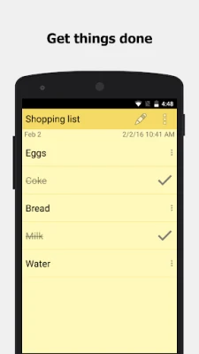 ColorNote® இல் குறிப்பெடுப்பது ஒரு புதிய அனுபவத்தைத் தரும். உங்கள் மனதில் தோன்றும் எண்ணங்களை, தகவல்களை சுதந்திரமாகத் தட்டச்சு செய்ய உரை அடிப்படையிலான குறிப்பு வசதி உள்ளது. இதை நீங்கள் திருத்தலாம், பகிரலாம், நினைவூட்டலை அமைக்கலாம் அல்லது முடித்தவுடன் ஒரு கோடு போட்டு குறிப்பைக் கடந்து செல்லலாம். அதுபோல, செய்ய வேண்டிய காரியங்கள், ஷாப்பிங் பட்டியல் அல்லது உங்கள் "செய்யப்பட வேண்டியவை" (GTD) திட்டங்களுக்காக, சரிபார்ப்புப் பட்டியல்கள் உருவாக்கலாம். எளிதில் பொருட்களைச் சேர்க்கலாம், நீக்கலாம், வரிசைப்படுத்தலாம். ஒவ்வொரு உருப்படியையும் ஒரு தட்டினால் சரிபார்க்கலாம் அல்லது சரிபார்க்கப்படாமல் விடலாம், இதன் மூலம் உங்கள் முன்னேற்றத்தை உடனேயே அறியலாம். மேலும், உங்கள் நாட்காட்டியுடன் இணைத்து டைரி எழுதுவதற்கும், தினசரி திட்டங்களை உருவாக்குவதற்கும் இது உதவுகிறது. முக்கியக் குறிப்புகளை உங்கள் முகப்புத் திரையில் ஸ்டிக்கி நோட் விட்ஜெட்களாக வைப்பதன் மூலம், அவற்றை மறக்காமல் செயல்படலாம்.