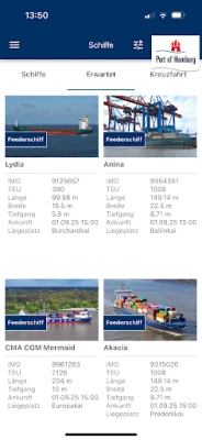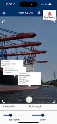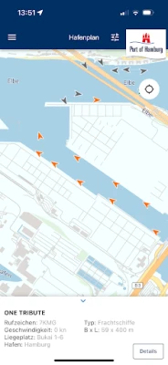 ஜெர்மன் வளைகுடா முதல் ஹம்பர்க் துறைமுகம் வரை உள்ள அனைத்து கப்பல்களின் நிகழ்நேர இருப்பிடத்தையும் "Hafen live (AR)" செயலியில் உள்ள துறைமுக வரைபடத்தில் தெளிவாகக் கண்காணிக்கலாம். ஹம்பர்க் மற்றும் உலகெங்கிலும் உள்ள முக்கிய துறைமுகங்களுக்கு இடையிலான அனைத்து கப்பல் போக்குவரத்து இணைப்புகளும் ஒரு சிறப்புத் தரவுத்தளத்தில் பதிவு செய்யப்பட்டுள்ளன. மேலும், ஹம்பர்க் துறைமுகம் மற்றும் அதன் பெருநகரப் பகுதியிலுள்ள அனைத்து முனையங்களைப் பற்றிய விரிவான விவரங்களும் இச்செயலியில் கிடைக்கின்றன, இது ஒரு முழுமையான கடல்சார் கண்ணோட்டத்தை வழங்குகிறது.