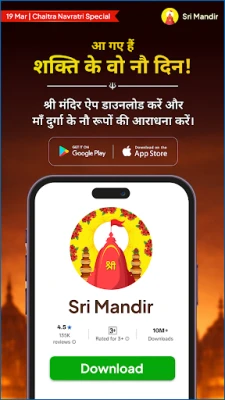 உங்கள் சொந்த டிஜிட்டல் கோவிலை அமைத்து, விரும்பிய நேரத்தில் இறைவனை வழிபடலாம். அனுமன், சிவன், விஷ்ணு, லக்ஷ்மி, துர்கா, கணேஷ் போன்ற உங்கள் இஷ்ட தெய்வங்களுக்கான சாலிசாக்கள், பஜனைகள், ஆரத்திகள், மந்திரங்கள், ஸ்தோத்திரங்கள் மற்றும் வால்பேப்பர்ஸ் என விரிவான பக்தி உள்ளடக்கங்களை ஆராயுங்கள். தினசரி பிரார்த்தனைகளுக்கான முக்கிய அறிவிப்புகள் மற்றும் ஜோதிடர்களிடமிருந்து நேரடி அழைப்புகள் மூலம் உங்கள் ஆன்மீகத் தருணங்களை ஒருபோதும் தவறவிடமாட்டீர்கள். உலகெங்கிலும் உள்ள 30 மில்லியனுக்கும் அதிகமான பக்தர்களால் நம்பப்படும் "ஸ்ரீ மந்திர் செயலி", அமாவாசை, பௌர்ணமி, ஏகாதசி, நவராத்திரி, தீபாவளி போன்ற முக்கிய பண்டிகை தினங்களில் பூஜைகள் மற்றும் சடாவா செலுத்துவதன் மூலம் உங்கள் வாழ்க்கையை தெய்வீக ஆசீர்வாதங்களால் நிரப்ப ஒரு பாதுகாப்பான மற்றும் சரிபார்க்கப்பட்ட ஆன்மீகத் தளமாக செயல்படுகிறது.